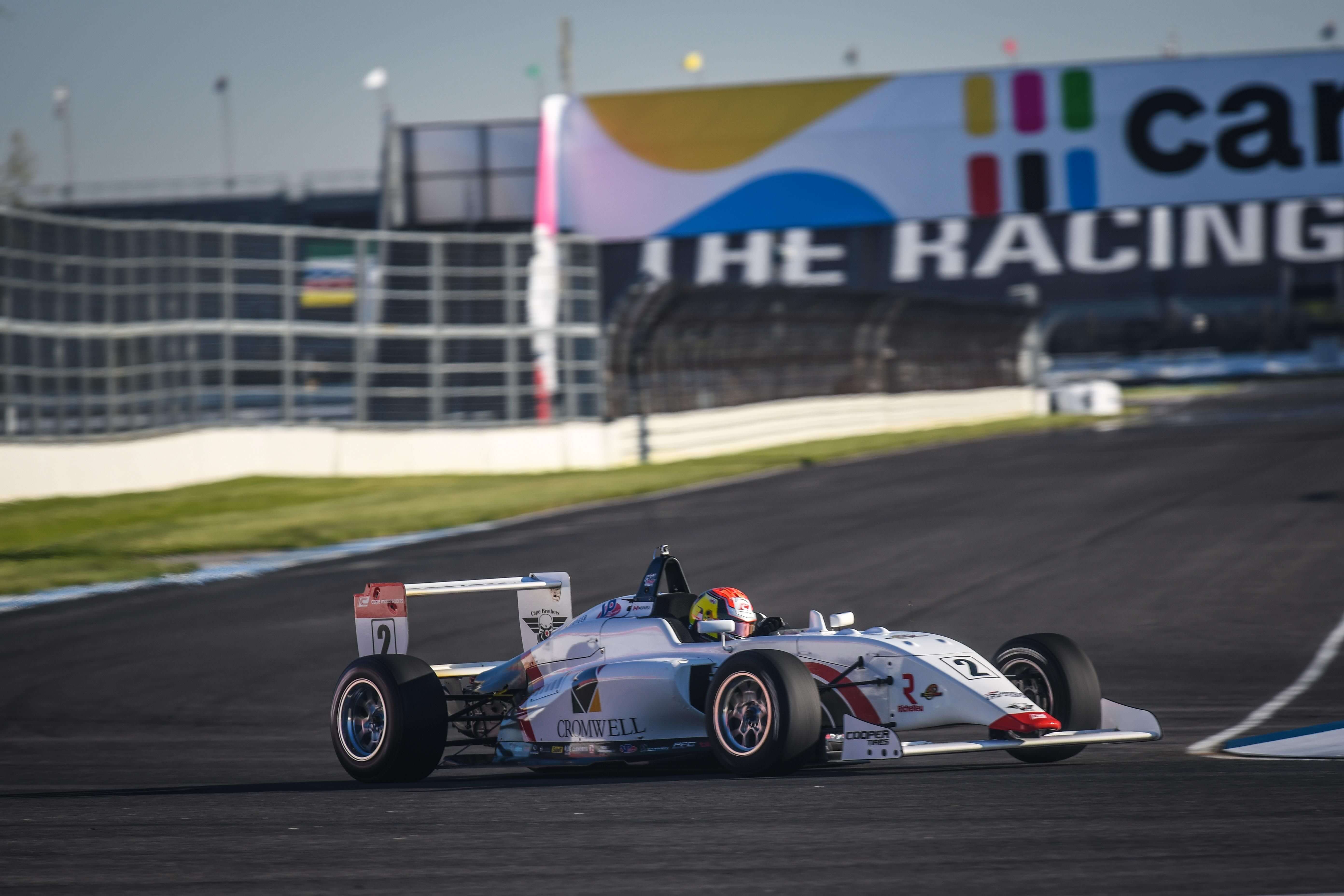 Thomas Nepveu a traversé un week-end important au Indianapolis Grand Prix Circuit, un tracé routier inscrit à l'intérieur de la piste légendaire du Indianapolis Motor Speedway. À l'instar de ses performances cette première saison en Cooper Tires USF2000, Thomas Nepveu a de nouveau démontré ses qualités de pilotes. Après avoir qualifié la voiture #2 Cromwell| Karting Excellence| Home Hardware en 7e position jeudi, Thomas Nepveu a respectivement croisé le fil d'arrivée 9e, 8e et 5e place lors des trois épreuves du week-end. Cette cinquième position signe son meilleur résultat à ce jour cette saison et laisse présager que nous retrouverons le jeune pilote d'Oka dans le top-5 pour les courses à venir.